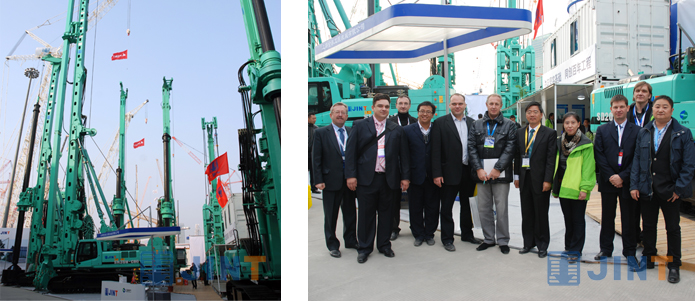 本届展会,上海金泰展出的设备有:SH系列大三角结构旋挖钻机,SD系列四连杆机构旋挖钻机,开挖深度达到100米的SG60型地连墙抓斗,世界首创、钻杆可伸缩、动力头中置的M系列三轴钻机以及使用CSM工法、适用于复杂地层C80液压铣削搅拌机。 丰富多样的产品吸引了100多位外商参观金泰展位,他们分别来自俄罗斯、印度、巴西、土耳其、美国、澳大利亚、越南、埃及等国家。参观过程中,世界领先的技术、完美的品质及有竞争力的价格激起了外国客户强烈的购买意向,甚至还有一些外国客户有意向作金泰产品在本国的经销商。