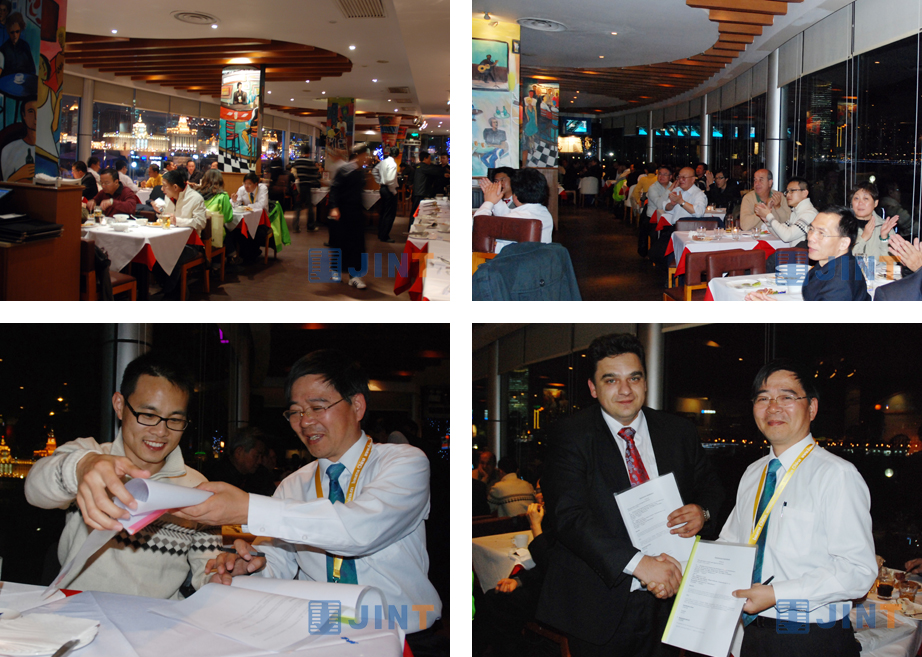 展会期间,上海金泰工程机械公司为答谢广大国外客户长期以来的支持,邀请国外客户参加在外滩天水恋意大利餐厅举办的晚宴,餐厅晚宴上均是金泰的老客户,借宝马展这个东风,齐聚一堂,共同见证金泰公司的辉煌历程。伴着和谐的音乐和璀璨的灯光,晚会达到高潮。当时有两国客户分别和金泰签订了合作意向书,为晚会增添光彩。