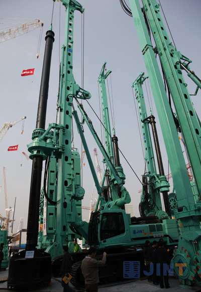 2005年,上海金泰开始生产连续墙液压抓斗,在竞争激烈的市场之中,上海金泰的连续墙液压抓斗的市场占有率已经达到国内第一。总经理林坚在接受采访时表示,“我们始终力求满足用户的需求,把握行业的发展命脉。上海金泰的地下连续墙液压抓斗从小到大,从无到有,走出了一条成功的发展之路。此次展会我们带来了SG46和SG60两种型号,这是当今国内先进、国际领先的产品。其中,SG60已经得到了实际施工的检验,保持了行业领先的地位。” 2010年10月28日,上海金泰工程机械有限公司自主研发制造的我国最大的SG60型连续墙液压抓斗在上海长江西路越江隧道口成功开挖。SG60采用康明斯QSM11-C型发动机,额定功率298 kW,系统最大压力为33 MPa,系统流量2×388 L/min,最大起拔力600 kN,开挖最大深度达100 m。施工现场,SG60开挖宽1.2 m、深58 m的地下连续墙仅用了6 h,高效的工作效率得到施工单位的充分认可。 旋挖钻机也是上海金泰的优势产品之一,林坚介绍说:“SH系列和SD系列多功能钻机均融合了现代液压桩工机械新技术和新工艺,各类技术性能达到或超过国际同类产品先进水平,关键零部件采用国际品牌产品。为满足国内外市场需求,金泰陆续推出了多款多功能钻机,对这些产品的市场前景我们非常有信心。”