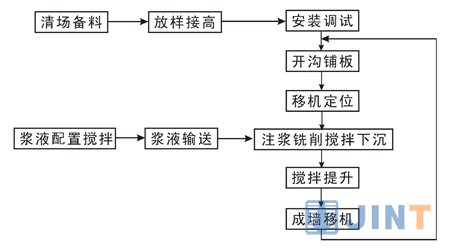 我公司自主研发的C60液压铣削搅拌钻机,吸收了国外先进技术和综合国内十多年来的地下连续墙施工经验,结合双轮铣和多轴钻机的的优点,集铣削和搅拌为一体的新型设备,并采用国际先进的CSM工法施工。CSM工法主要分为下钻成槽、上提成墙两部分,有施工快捷、施工噪音小、成墙质量好、搭接面积少、适应各种复杂地层等优点。
