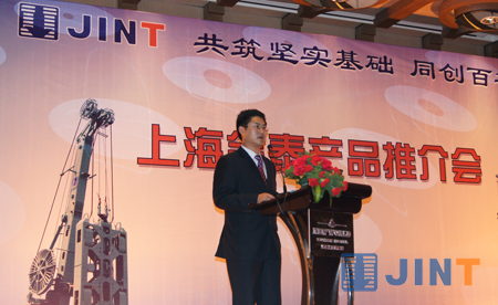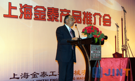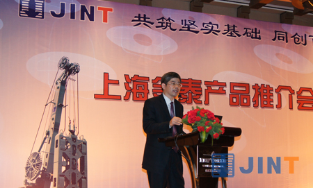 上海金泰副总经理徐峰为会议致欢迎词,他指出近年来,通过金泰全体员工的努力,正确把握市场需求方向及广大用户的信任支持,金泰取得了一些可喜的变化和成绩。特别是自2008年以来,金泰公司在上级公司“上海电气集团”的大力支持和帮助下,投资3亿多元,对公司原有厂房和装备进行了大规模的改造,极大地提升了金泰向“机电一体化”高端工程机械产品进军的生产能力。