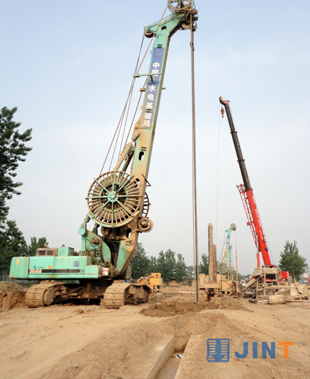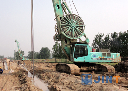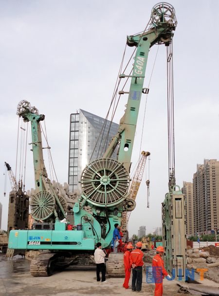 春夏时节中华民族先祖活动的重要地区的河南省郑州市机器轰鸣,锣鼓喧嚣,随着一台台连续墙液压抓斗到场施工,“引黄灌溉龙湖调蓄工程”(以下简称“龙湖工程”)中的地下防渗墙工程已全面开展。郑东新区——郑州未来的商业文化住宅中心,迎来了前所未有的发展良机,作为郑汴一体化的重要环节,整个中原地区均将目光汇聚于此,该工程竣工后,将与现在2000多亩的国家森林公园共同构成新的城市核心生态区。目前已有上海金泰工程机械有限公司多种规格包括SG22、SG35A、SG40A、SG46连续墙液压抓斗28台参与“龙湖工程”施工,整个防渗墙项目一半以上的工程均采用了金泰液压抓斗,并得到了施工单位和甲方的一致认可。
