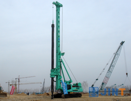 据大金马基础建设公司工程负责人介绍,该区域地层结构较为复杂,分别为回填含碎石沙土层、粗砂、细沙、强风化板岩、中风化板岩。为保证工程进度和施工质量,该公司综合评估了国内桩工机械主要厂商的相关产品,最终选定以上海金泰SH和SD系列多功能钻机为主力机型进行桩基础施工。