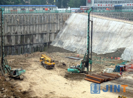 这是北京燕翔饭店改扩建工地,3台上海金泰SD12旋挖钻机运作不息,为这座超五星级酒店按时完工进行桩基础施工。SD12是上海金泰工程机械有限公司研制的小型旋挖钻机产品,自2007年上市以来累计制造销售近100台,由于其整机操作灵活、施工效率高、维护方便,深受国内外用户青睐和好评,在各类市政工程、工民建等的中小型桩基础施工中发挥着主力军作用,展示着上海金泰产品品质和企业的实力。