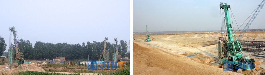 桩工设备中的连续墙抓斗作为水利水电建设中的主要工程机械品种,在防渗漏、固堤坝、保安全方面发挥着巨大作用。由于全国各地地质条件复杂多样,有砂层、卵石、岩石、溶洞等各种地层,所以对连续墙抓斗的技术含量和开挖成槽工艺要求非常严格,但这对于上海金泰工程机械公司的连续墙抓斗,不是困难,都能做出理想的地下成槽工艺。并且,金泰SG系列连续墙抓斗在这一领域独领风骚,创造了行业内一个又一个经典工程,如:南水北调工程、三峡水利工程、安谷水电站项目、拉萨旁多水利枢纽、马鞍山水库工程、引黄灌溉龙湖调蓄工程、兴隆水利施工等,产品在这一领域的平均使用率达到75%以上。目前,金泰公司具有国内最完整系列地下连续墙抓斗,产品型谱为:SG22、SG35、SG46、SG46E、SG50、SG60。这些绿色身影忙碌在一系列水利水电工程上,属于地下连续墙施工领域的绝对主力军,为国家建设、居民安康做出了重要贡献。