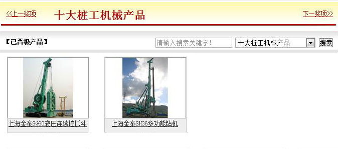 2013年8月30日18时,由慧聪工程机械网和慧聪工程机械配件网主办的“2013中国工程机械行业十大评选”网上投票活动正式结束,网上投票窗口已经关闭,历时一个月,三百余家国内外知名工程机械整机及配套件企业产品已经通过网络投票正式确定各奖项20强名单。“2013中国工程机械行业十大桩工机械产品评选”20强名单中,我公司 SG60液压连续墙抓斗与SH36多功能钻机榜上有名。