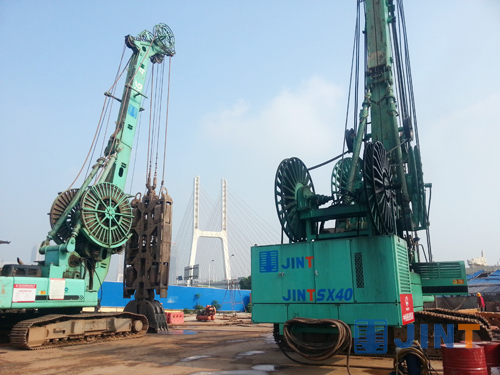 SX40双轮铣是上海金泰通过自主研发在国内率先推出的双轮铣槽机,也是南昌地铁自09年开建以来,首次引进该种设备进行地下连续墙施工。据了解,南昌轨道交通2号线过江隧道长约2.3公里,由于区间较长,线路设有一座中间风井,用于加强隧道内部空间空气流通。该工程为明挖地下5层双柱3跨结构,除轨道交通风井功用外,还将建设市政设施;工程围护结构采用80厘米地下连续墙结构,墙深34米,其中底部20米位于岩层中,施工难度大,施工安全、质量要求高。为满足工程总体安全、质量、工期要求,经多方论证,决定在中间风井连续墙施工中采用该领域技术先进的双轮铣成槽设备担当重任。施工方先采用SG60抓斗在较软地层抓槽15米,再以SH30H旋挖钻机钻出4个引孔,最后以SX40A铣削成槽到底;该设备是在南昌地铁施工中首次使用,将为南昌地铁后续建设及地下工程开发积累经验。
