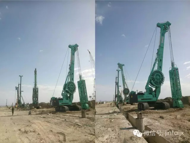 该项目位于新疆哈密地区,防渗墙总方量为136000m3,槽宽800mm,平均深度为52m,目前有7台上海金泰SG抓斗投入施工;