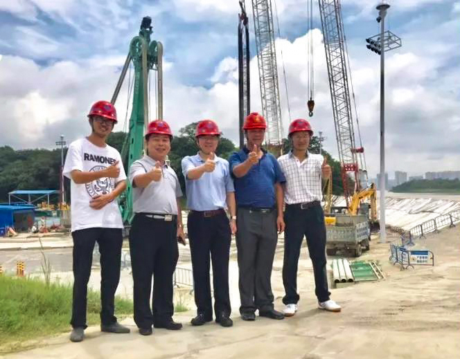 日前,工程承建单位广西路桥集团、施工单位广东深大基础公司以及设备供商上海金泰三方领导亲临施工现场视察。广东深大基础公司的李总对金泰SX40双轮铣的稳定性和施工效率给予了高度的评价:“金泰的双轮铣为我们的施工进度提供了有力的保障,从5月初正式开工至今,设备已运行了近1600小时,没有发生任何故障,至今已顺利完成了80%的工程,而且维护成本相当低,金泰的双轮铣高效稳定,能力强劲,不负使命!”