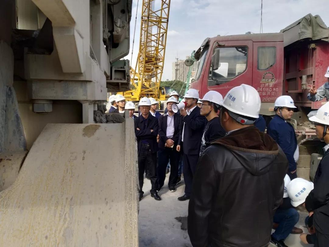19日下午,在组委会的支持协助下,我公司组织了近百名参会专家客户到南京地铁7号线-莫愁湖站工地参观SX40双轮铣和SG60A液压抓斗工法演示。本次现场参观考察由我公司驻该项目技术服务负责人工法研究所副所长胡君军负责讲解。