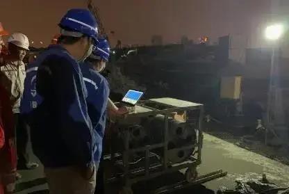 该工地48M以下均为沙层,适合金泰SG70抓斗直接成槽,目前SG70在场施工稳定、效率高,平均2天可完成一副槽。上海隧道工程有限公司闵永良项目团队将金泰SG70成槽的20m/40m/66m深度进行多次超声波检测,将地下连续墙垂直精度控制在了1/1000以内。该项目团队还使用了由上海工匠王峰研制的反力箱引拔器,降低了反力箱起拔过程中的安全隐患,提高了起拔成功率。